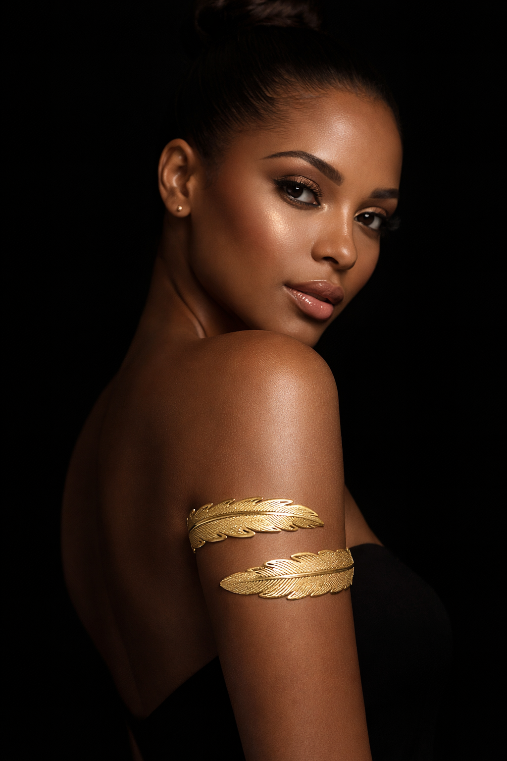 Apportez une touche majestueuse à votre style avec ce bracelet de bras doré. Son design délicatement sculpté épouse harmonieusement le bras pour créer un effet à la fois raffiné et original.